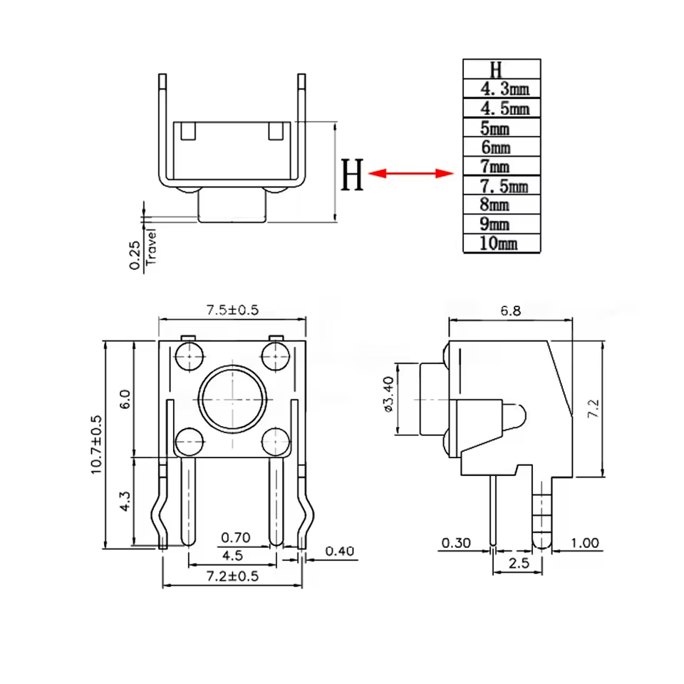 10X PULSADOR TACTIL MICRO INTERRUPTOR ANGULO RECTO CON STENT SOPORTE 6X6X11MM