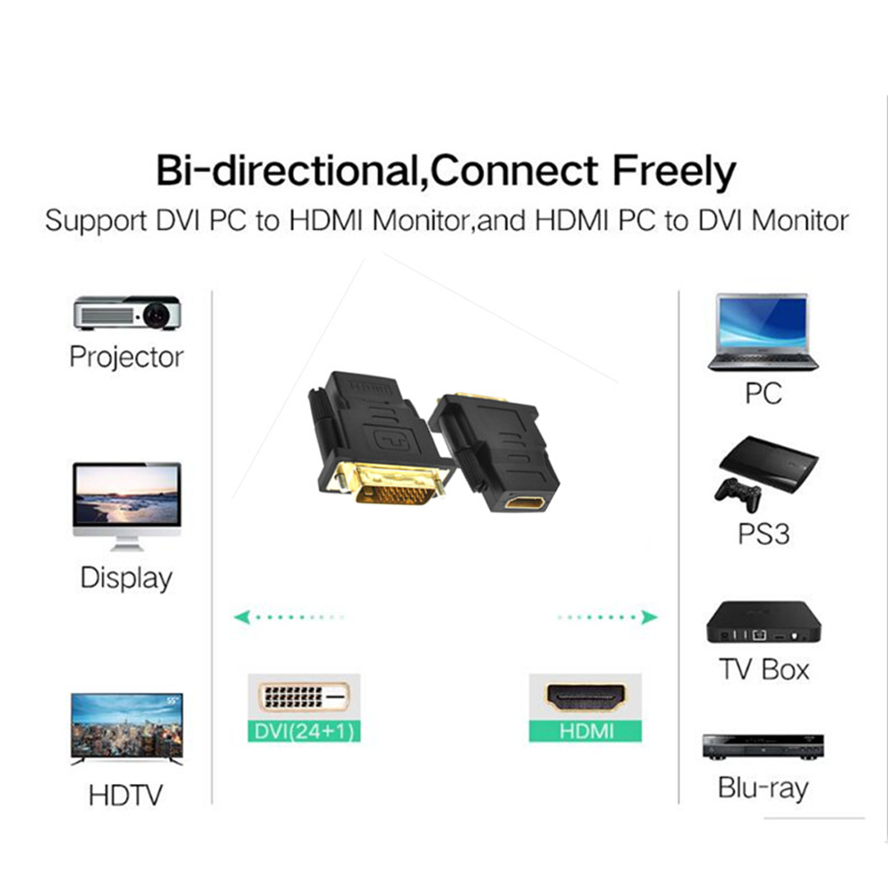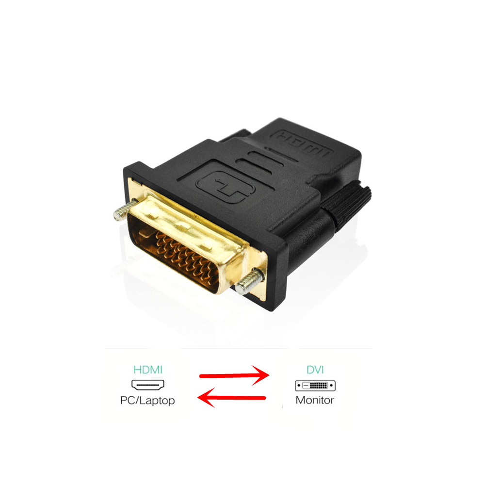 Este adaptador vale para conectar equipos con conexiones HDMI a DVI-I, por ejemplo un portátil con salida HDMI a un monitor con entrada DVI-I o un ordenador con salida DVI-I a un monitor con entrada HDMI.