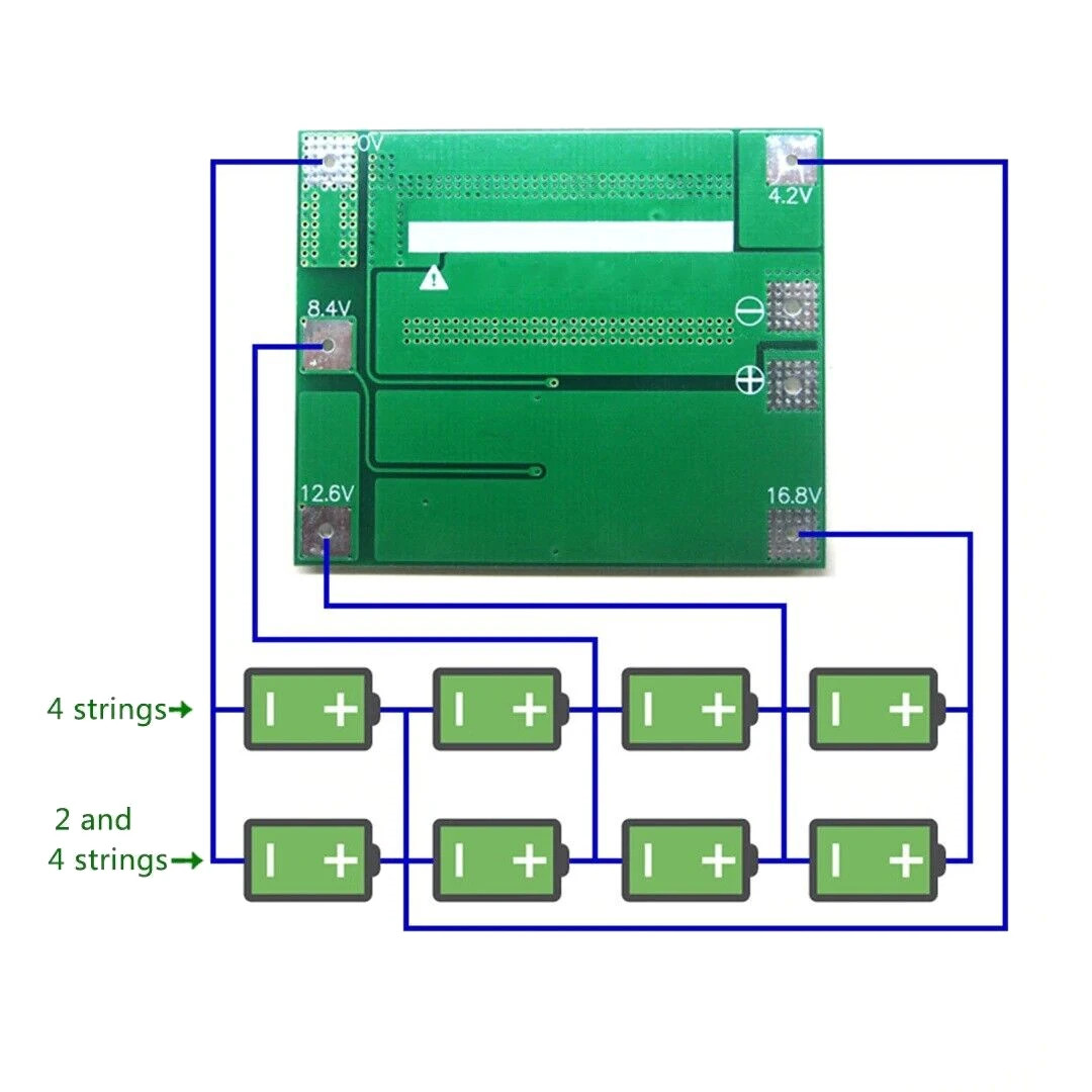 Siga estrictamente el cableado de conexión 0V-4,2V-8,4V-12,6V de lo contrario puede dañar la placa de control.
