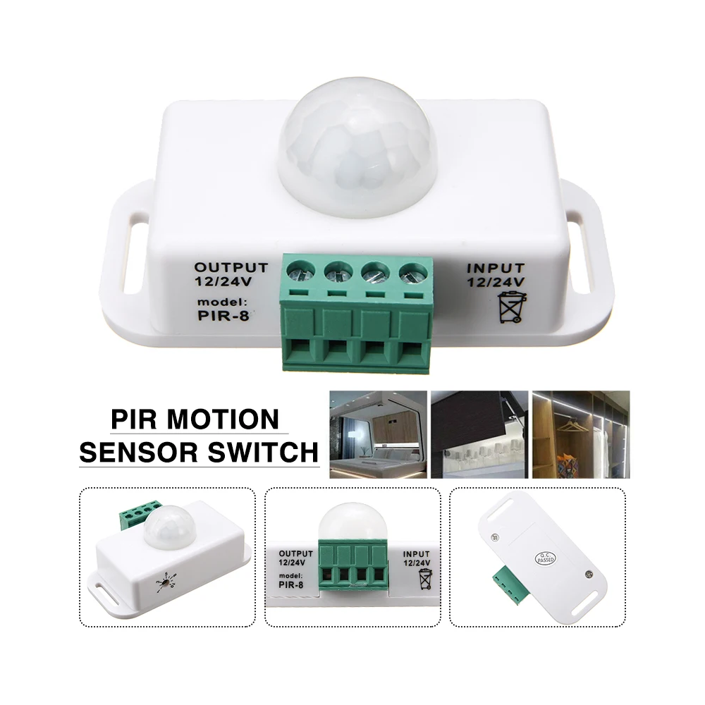 Detector Sensor Movimiento PIR Infrarrojo Interruptor con temporizador 12V-24V B