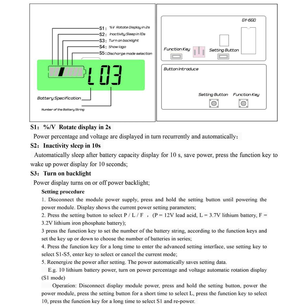 Monitor universal de estado de la batería: amplio rango de entrada de voltaje de trabajo DC 12V-84V. Se puede detectar automáticamente el voltaje exacto de acuerdo con el voltaje de la batería.