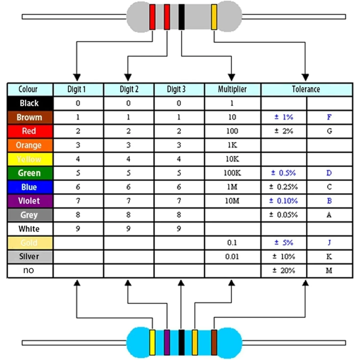 Es ideal para su uso en protoboards, placas de circuito impreso (PCB) y para la reparación de equipos electrónicos. Su código de 5 bandas de colores (Verde – Azul – Negro – Rojo – Marrón) permite una identificación rápida y sencilla de su valor.