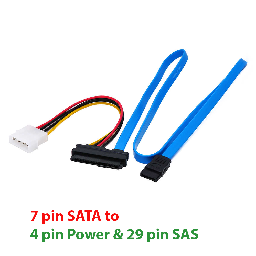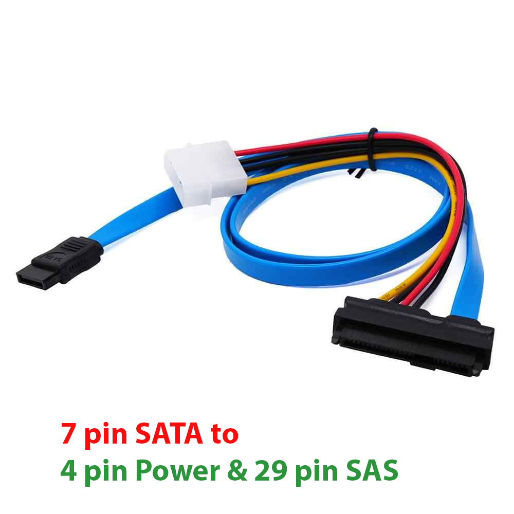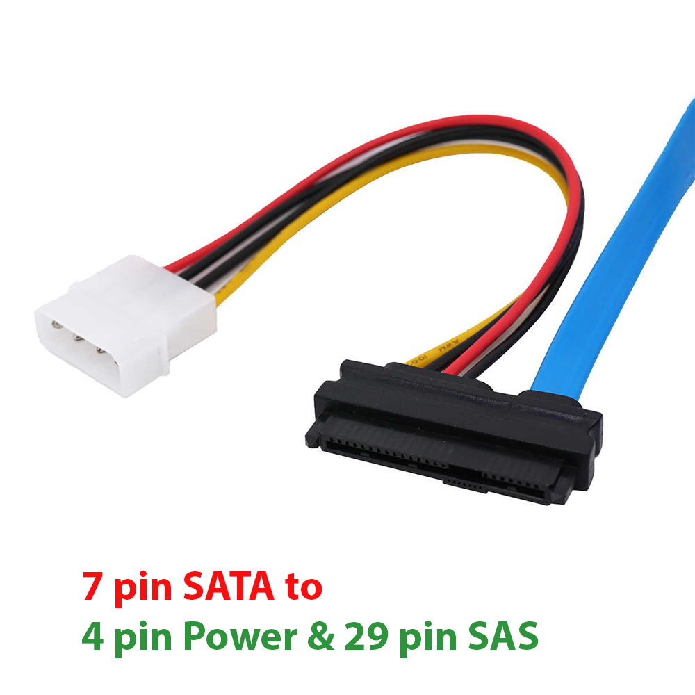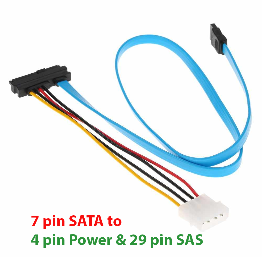 SFF-8482 7 Pin SATA Serial a SAS 29 Pines & cable de alimentacion de 4 pines molex 70cm